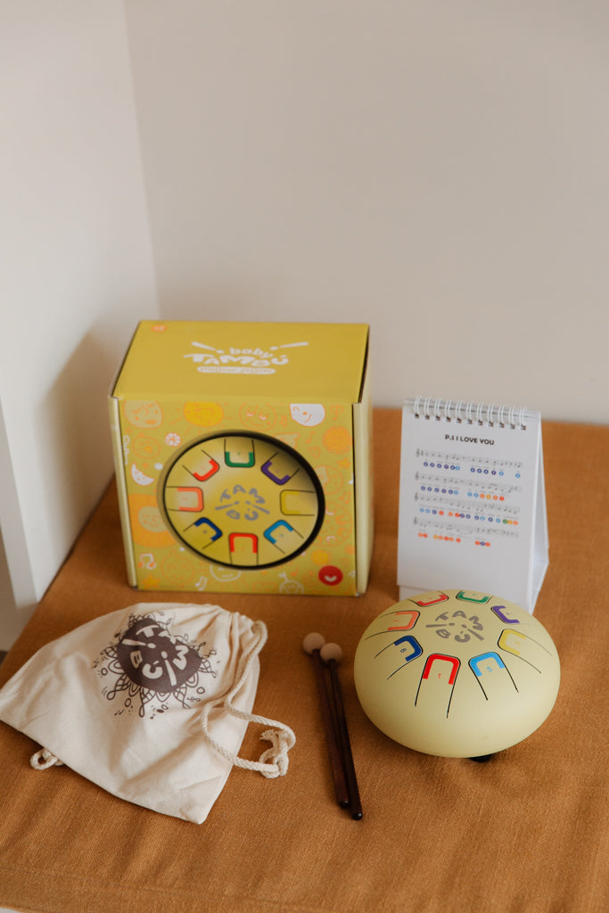 Brillante y alegre como el sol, el Baby Tambú Mellow Yellow refleja la calidez y energía de un día soleado. Con sus colores vibrantes y temática luminosa, es ideal para los niños que buscan irradiar felicidad y positividad en sus melodías.