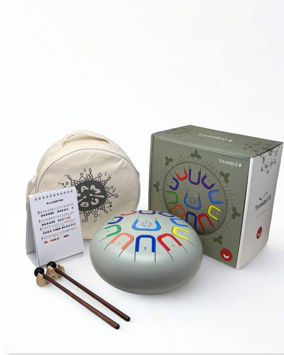 Tambú+ es la versión extendida del clásico Tambú. Con un diámetro de 25 cm, ofrece una mayor resonancia y profundidad sonora—perfecto para quienes desean explorar composiciones más ricas y sonidos más envolventes.