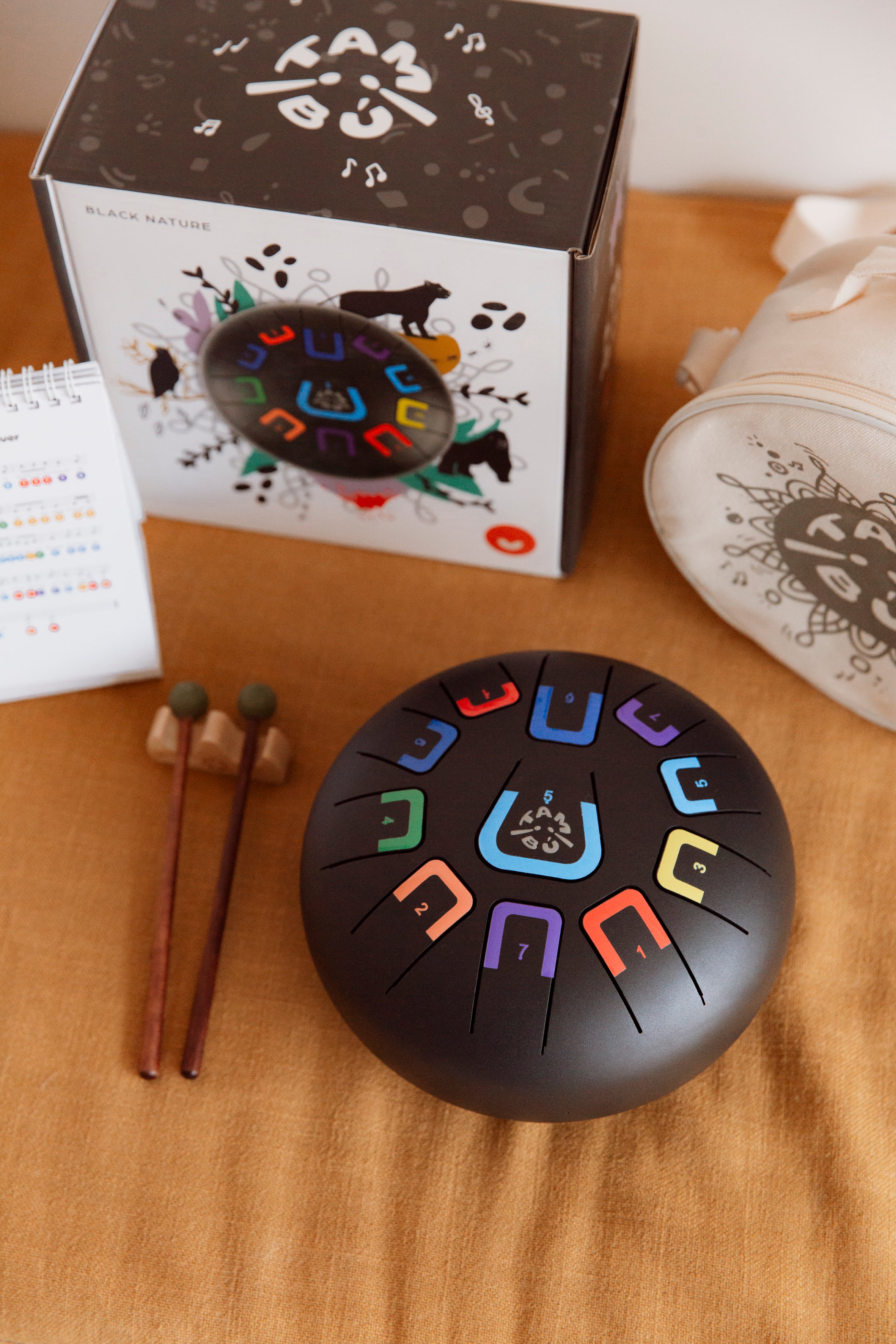 Tambú is an innovative tongue drum designed for all ages. It allows you to create harmonious melodies from the very first moment, with no prior musical knowledge required.