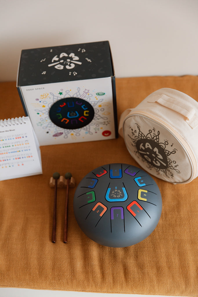 Tambú is an innovative tongue drum designed for all ages. It allows you to create harmonious melodies from the very first moment, with no prior musical knowledge required.