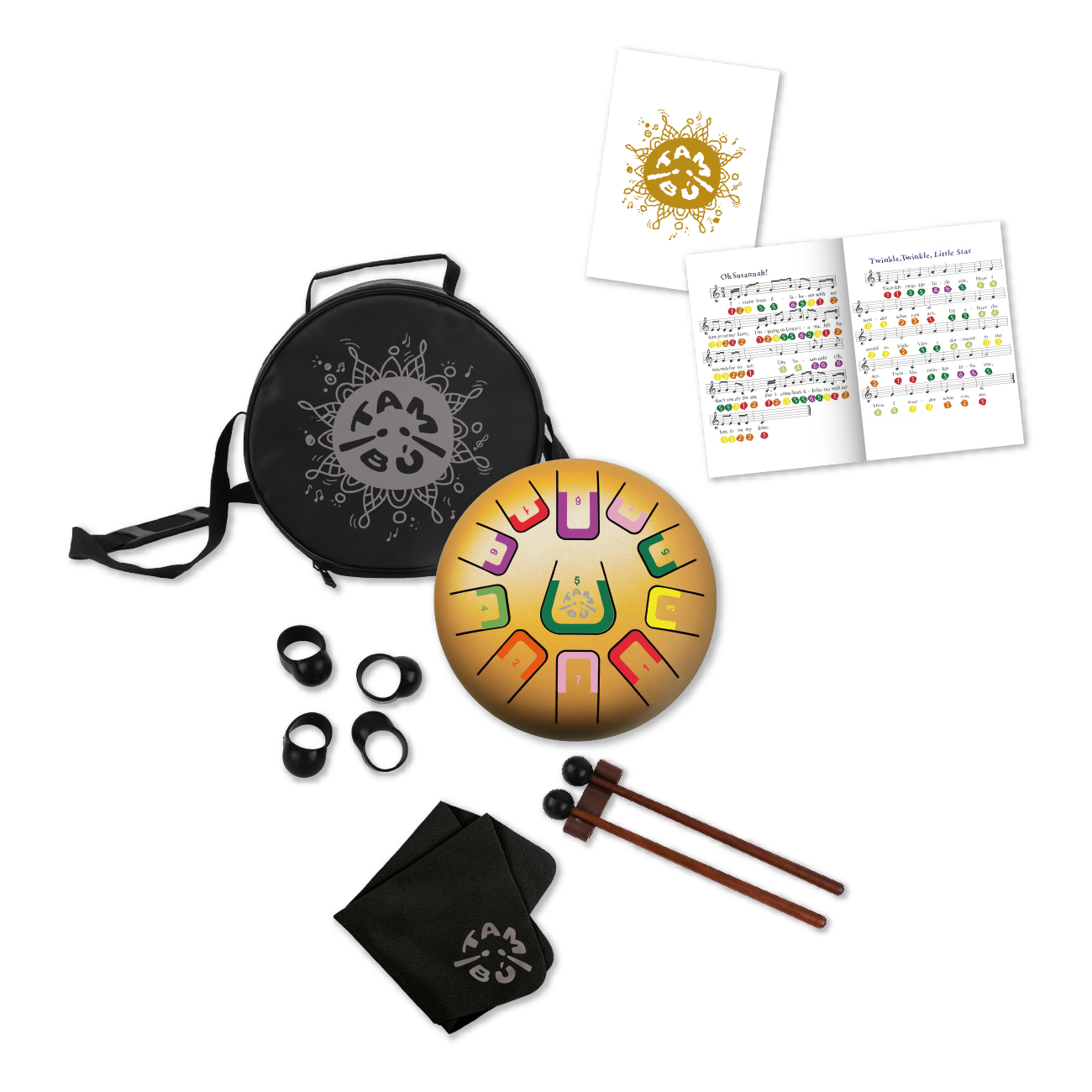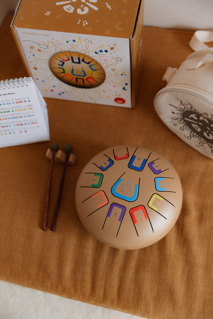 Tambú is an innovative tongue drum designed for all ages. It allows you to create harmonious melodies from the very first moment, with no prior musical knowledge required.